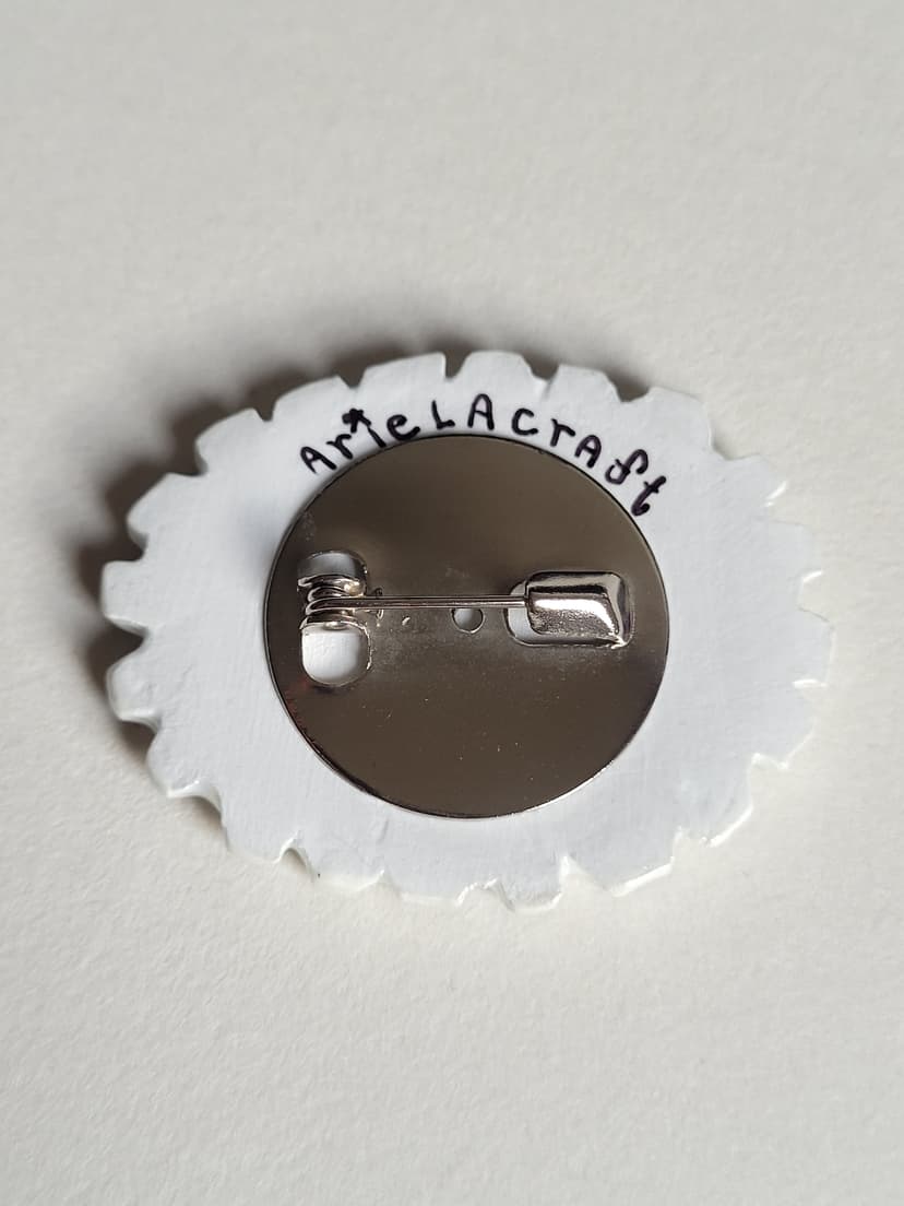 Broche totalmente feito à mão, com cerâmica fria e finalizado com laca e verniz acrílico.