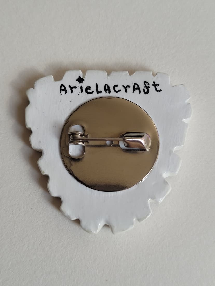 Broche totalmente feito à mão, com cerâmica fria e finalizado com laca e verniz acrílico.